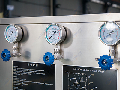 FJZ-4A型飛機加油接頭綜合試驗臺是為滿足偏遠地區(qū)或者不便于提供電源的現(xiàn)場測試各型飛機壓力加油接頭性能及飛機加油膠管耐壓試驗要求而專門進行設計的一款試驗設備。它能準確輸出和檢測試驗過程中的各種壓力,測試精度滿足技術(shù)要求。該設備具有性能可靠,操作簡便,移動性強,不帶電提供壓力,可擴展測試其它管路及閥門等特點。試驗臺整體采用不銹鋼材質(zhì),試驗臺管路均為不銹鋼管路,滿足各種惡劣環(huán)境下的工作要求,是一臺具有一定通用性的航煤綜合測試設備。
